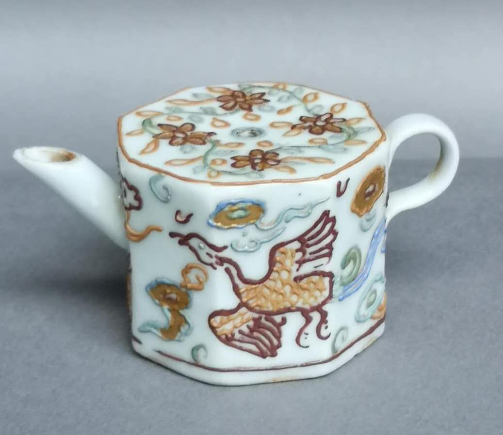 Golden powder laminated gourd shape pot with pine, plum and bamboo
