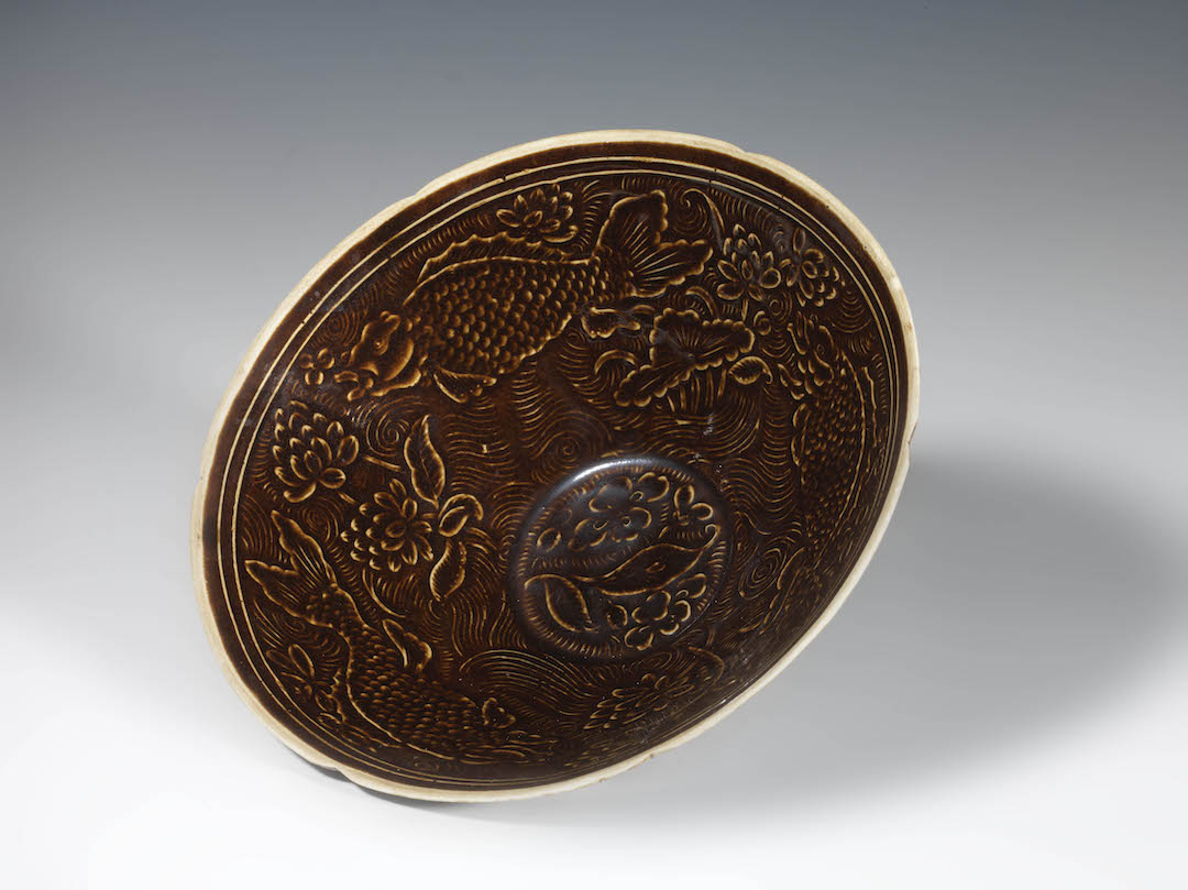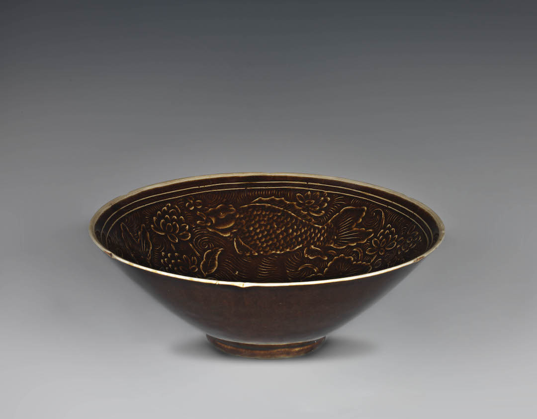 Imperial Reddish brown bowl engraved with three fishes