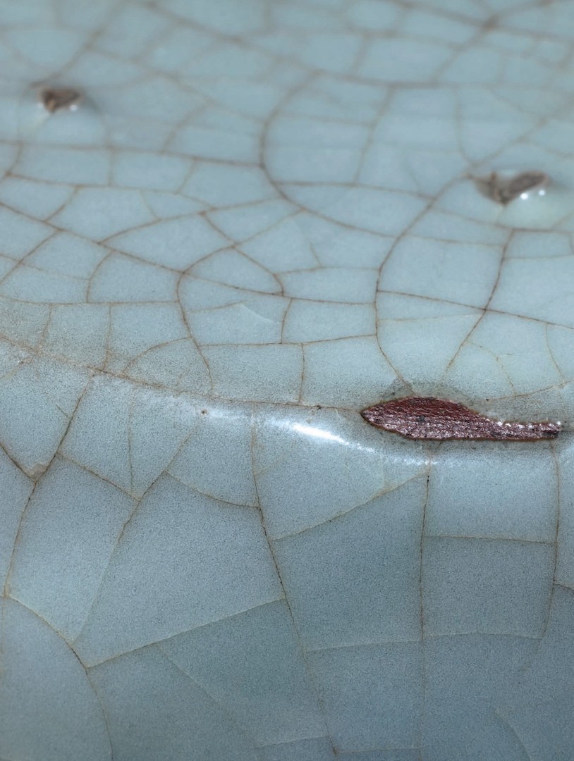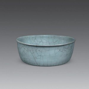Eight-mallow-petal-shaped brush washer with darker bluish grey glaze