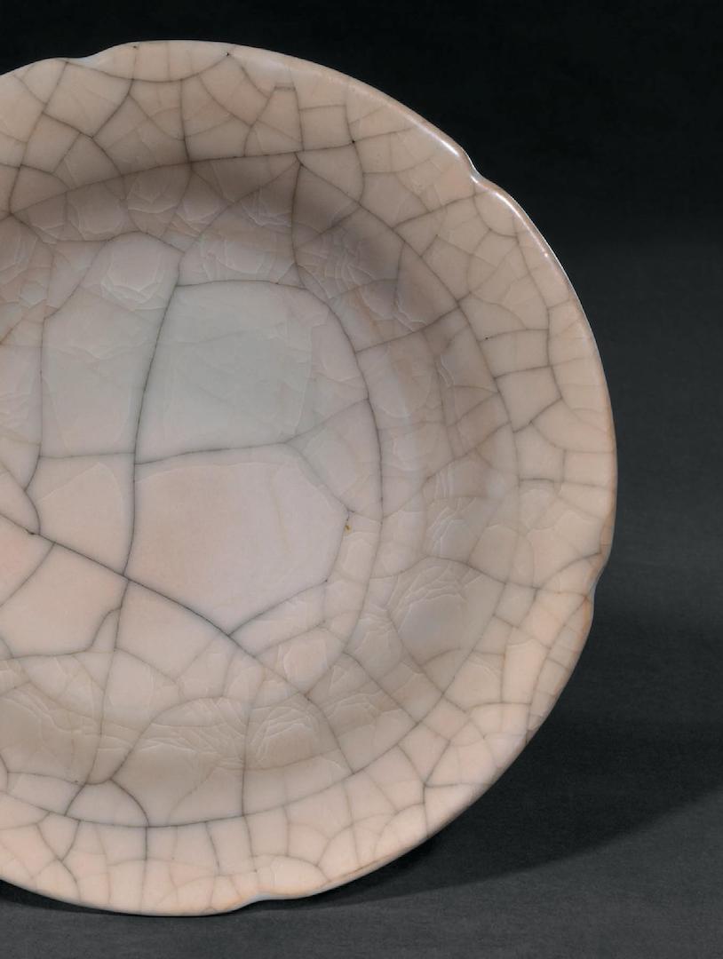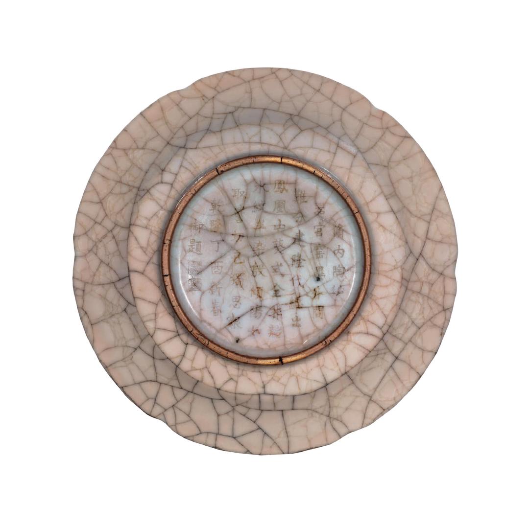 Powder-blue-glazed plate with six mallow petal shape mouth rim