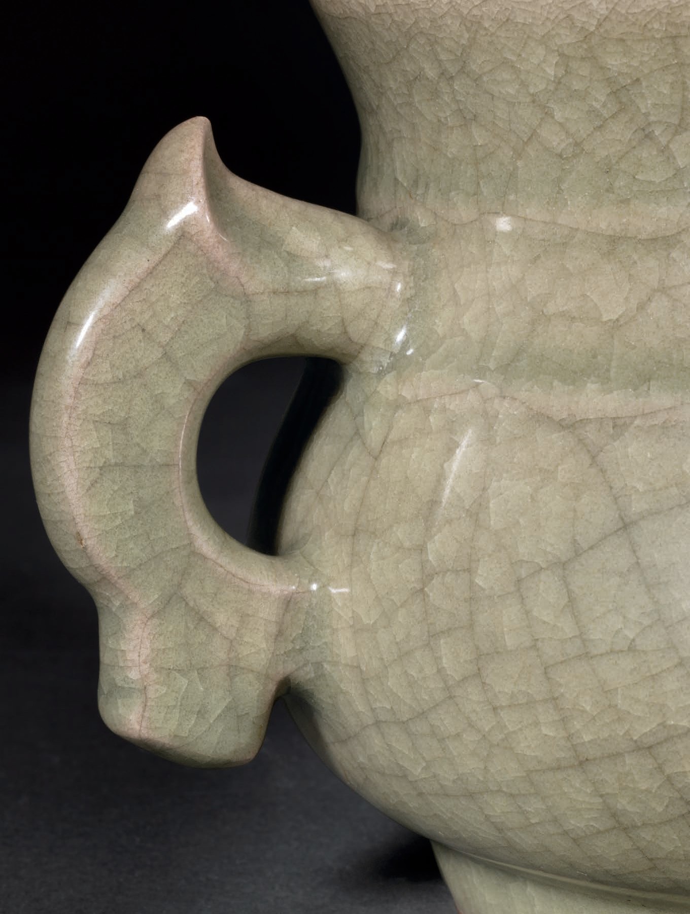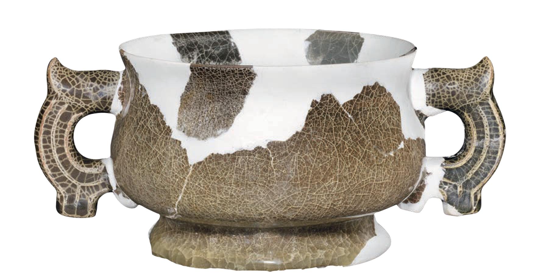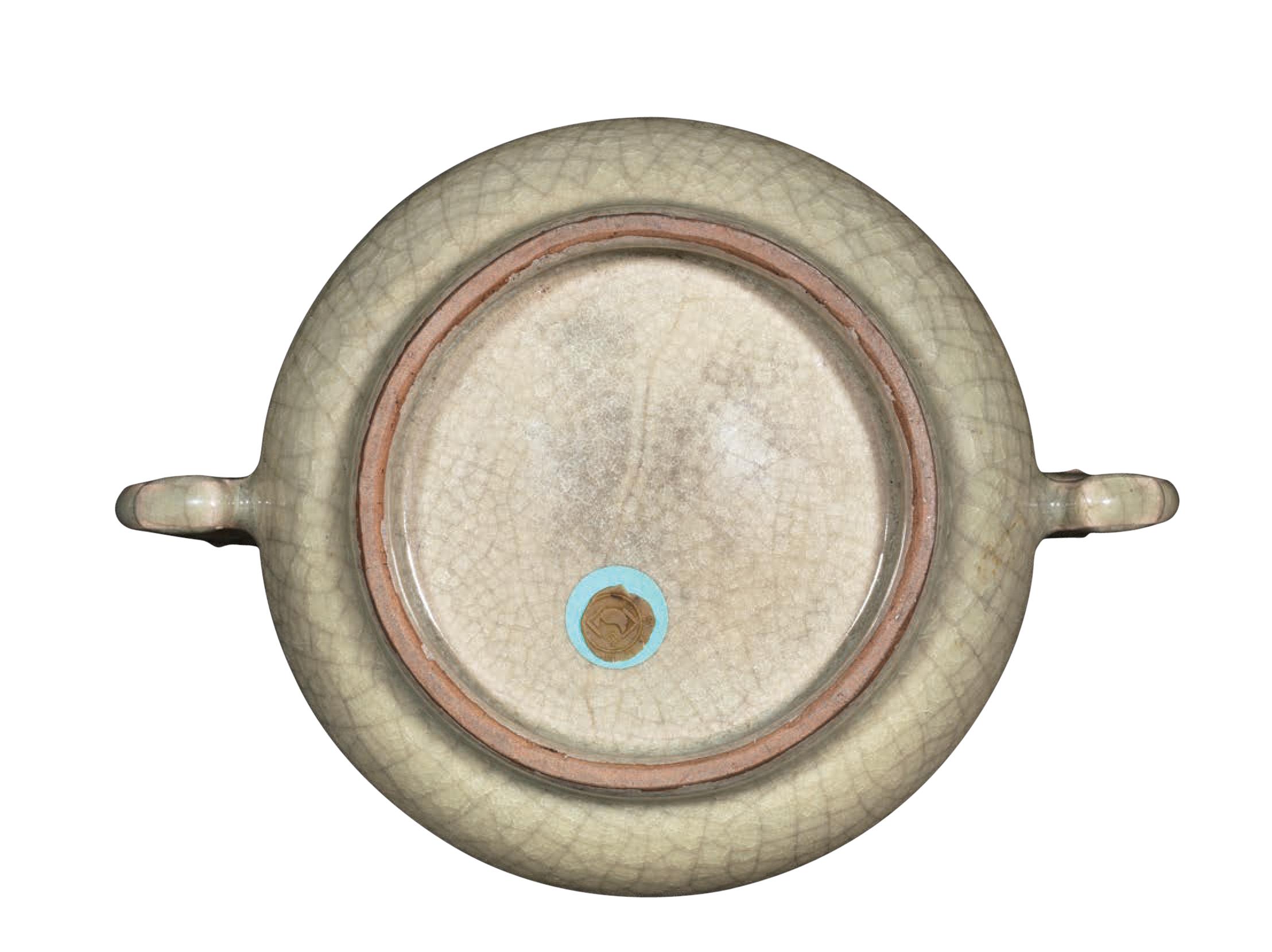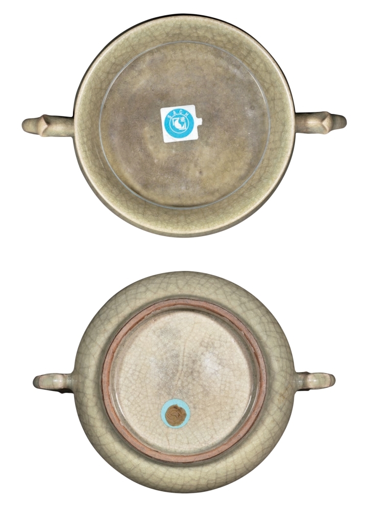 This incensed burner imitated the shape of ritual bronze vessel in Shang and Zhou dynasties (1600-256 BC) with dragon shape handlers both sides.